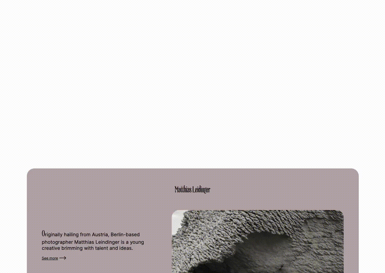 const card2Opacity = useTransform(scrollYProgress, [0, 0.5, 0.55], [0, 0, 1]);I had to test out multiple value mappings based on the card heights and the scrolling container. It was tricky to create a decent scrolling reveal, and still it’s not the smoothest one.